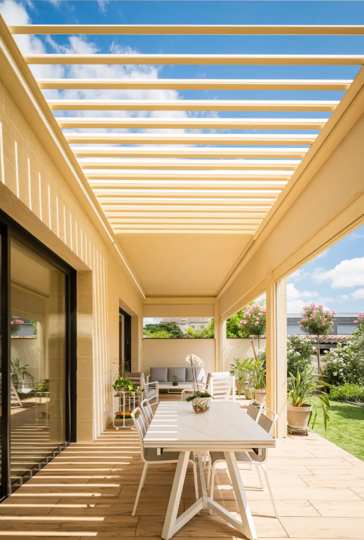Pergolas & Outdoor Structures: From sleek, minimalist pergolas to fully enclosed outdoor rooms, Renson’s aluminum structures create versatile, all-season spaces designed for dining, lounging, and gathering. Combining durability with refined European design.